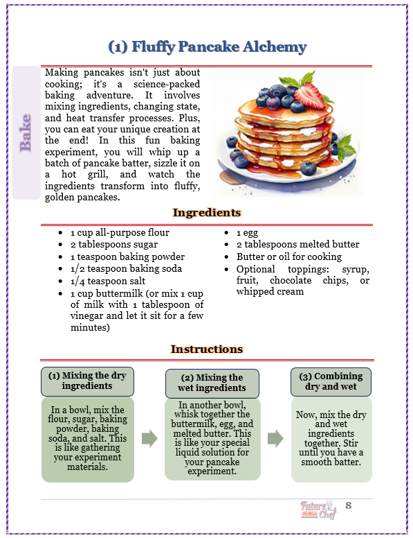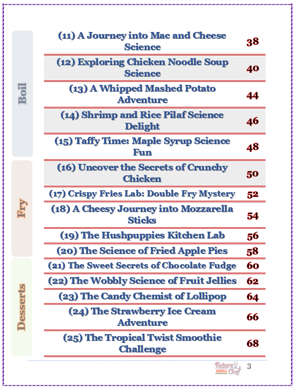 Kids learn how ingredients transform, why heat changes food, how dough rises, why chocolate melts, and what makes flavors develop. With ingredient lists, equipment guides, step-by-step recipes, vibrant visuals, and scientific explanations, Future Chef makes STEM learning fun and edible!